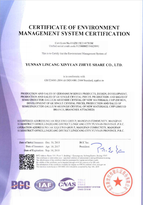 環(huán)境管理體系認證證書(附件中文)